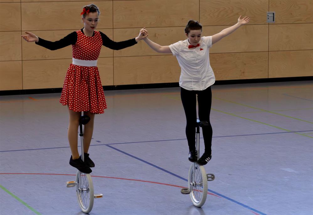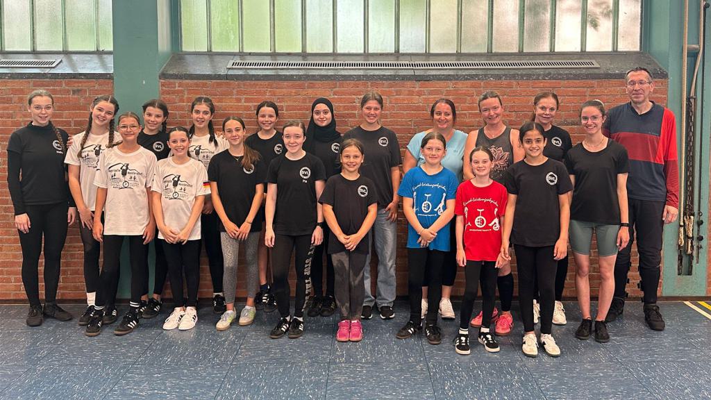 Die 15 Teilnehmerinnen unserer Einradgruppe durften unter ihrer fachkundigen Anleitung lernen, wie man an besonders schwere Einradtricks herangeht und diese meistern kann.