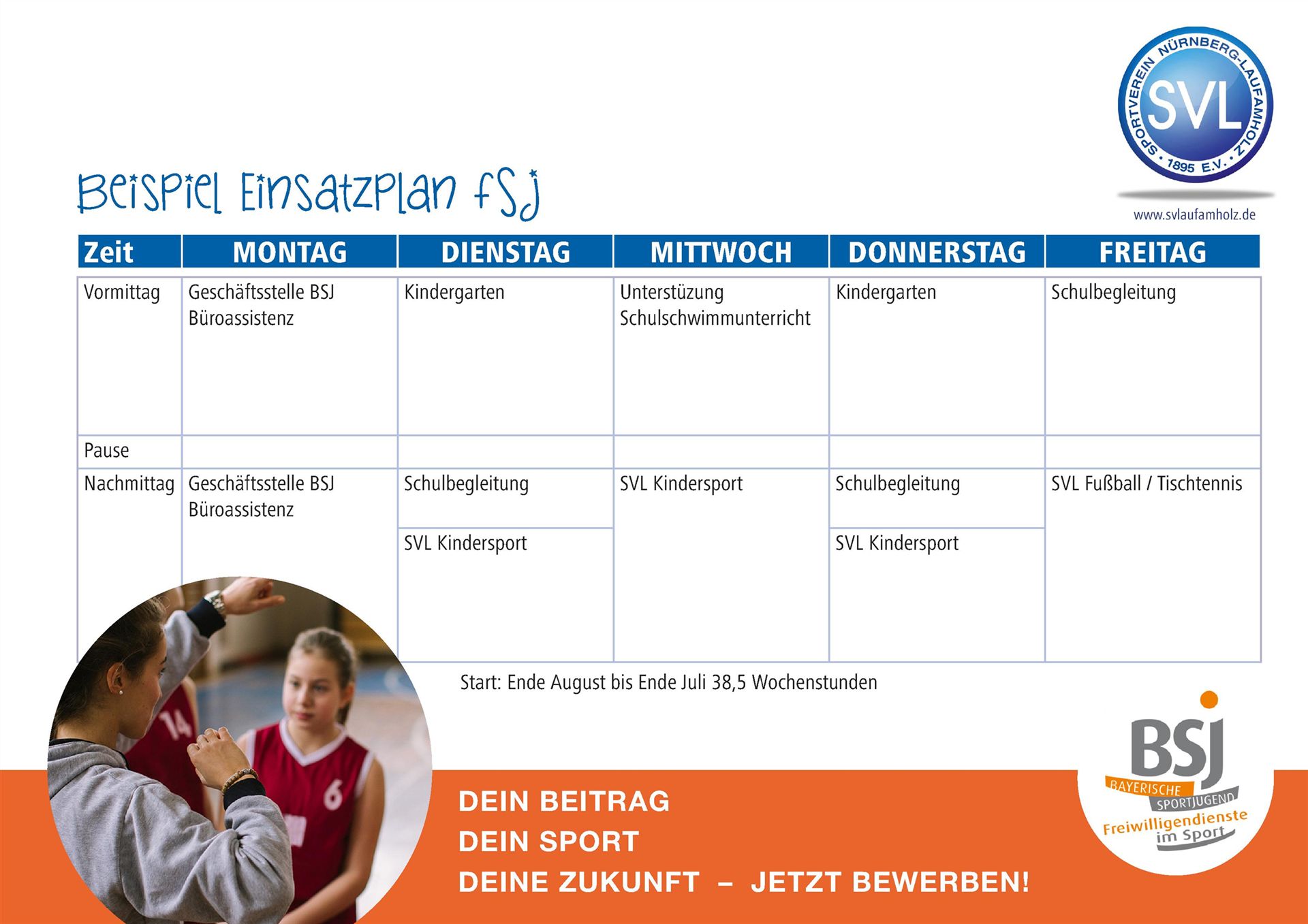 Seit über 20 Jahren bietet der SV Laufamholz in Kooperation mit der Sportjugend Nürnberg jungen Menschen ein Orientierungsjahr. Alle Absolventen denken sehr gern an die Zeit beim Verein am östlichen Stadtrand von Nürnberg zurück.